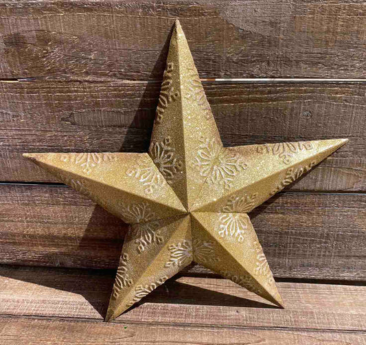 14" Glittered Metal Star With Snowflakes