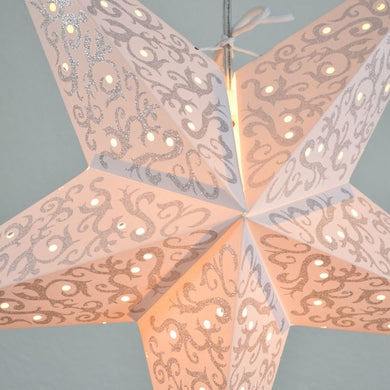 24" Silver Bramble Glitter White Paper Star Lantern (Light Not Included)