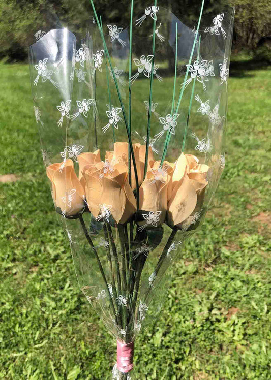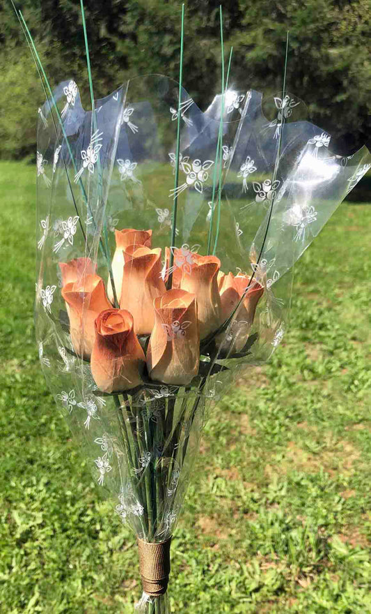 Tired of your fresh flowers wilting? These rose bouquets make a beautiful decoration that lasts and lasts. These wooden rosebuds are made from thin pieces of birch wood. Each one goes through a dye process making each stem truly unique! Makes a great gift!