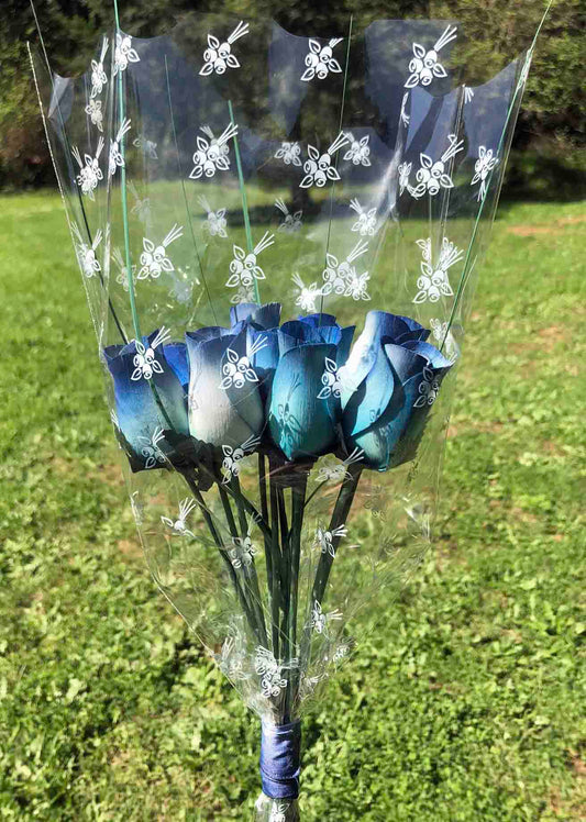 One Dozen Wood Rose Bouquet, Light Blue & Royal Blue