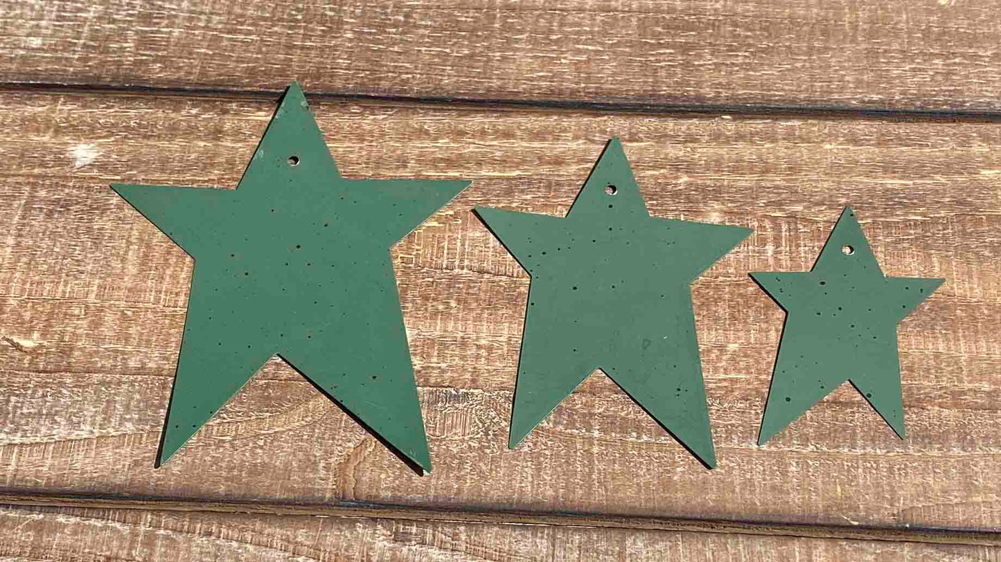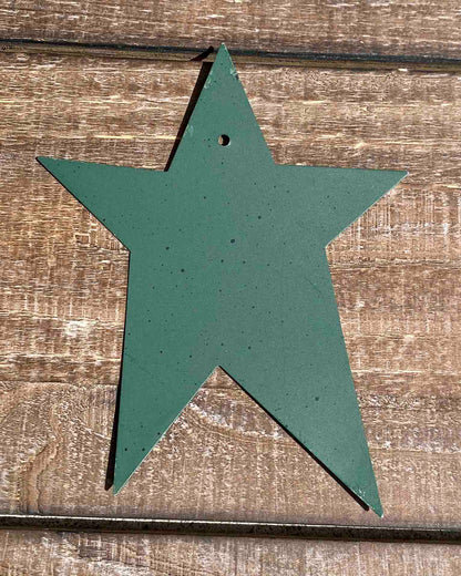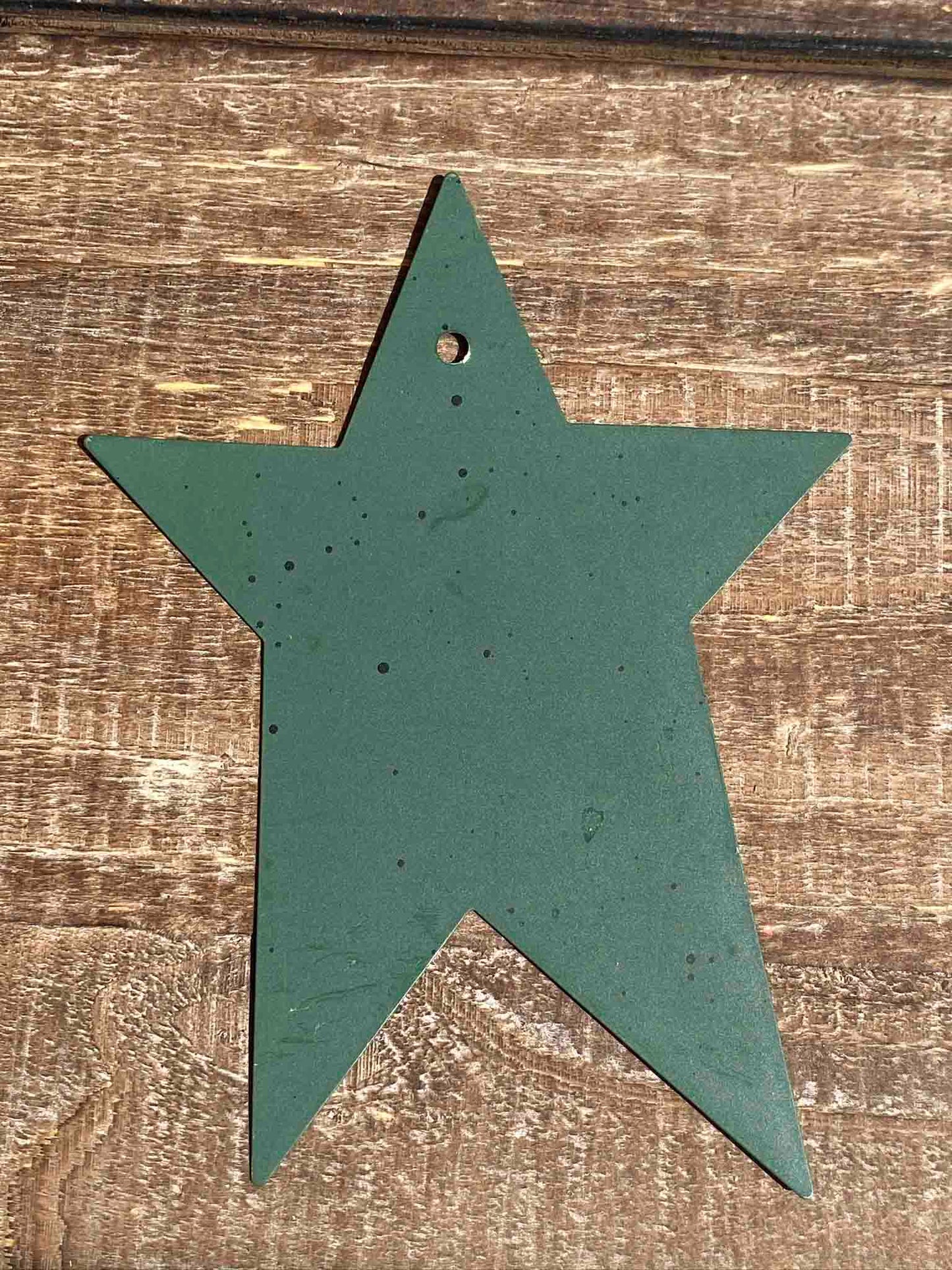 We love this primitive metal star painted country green and accented with black paint speckles. Add a touch of country to your home!
