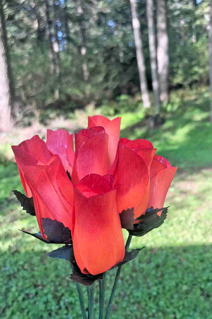 Tired of your fresh flowers wilting? Have a wedding or prom coming up? These roses make beautiful decorations, bouquets and centerpieces. These wooden rosebuds are made from thin pieces of birch wood. Each one goes through a dye process making each stem truly unique!