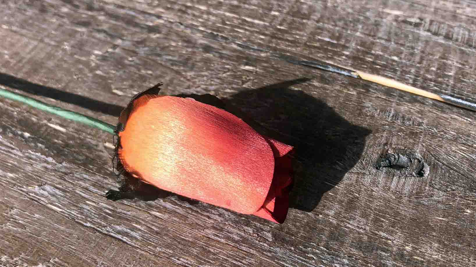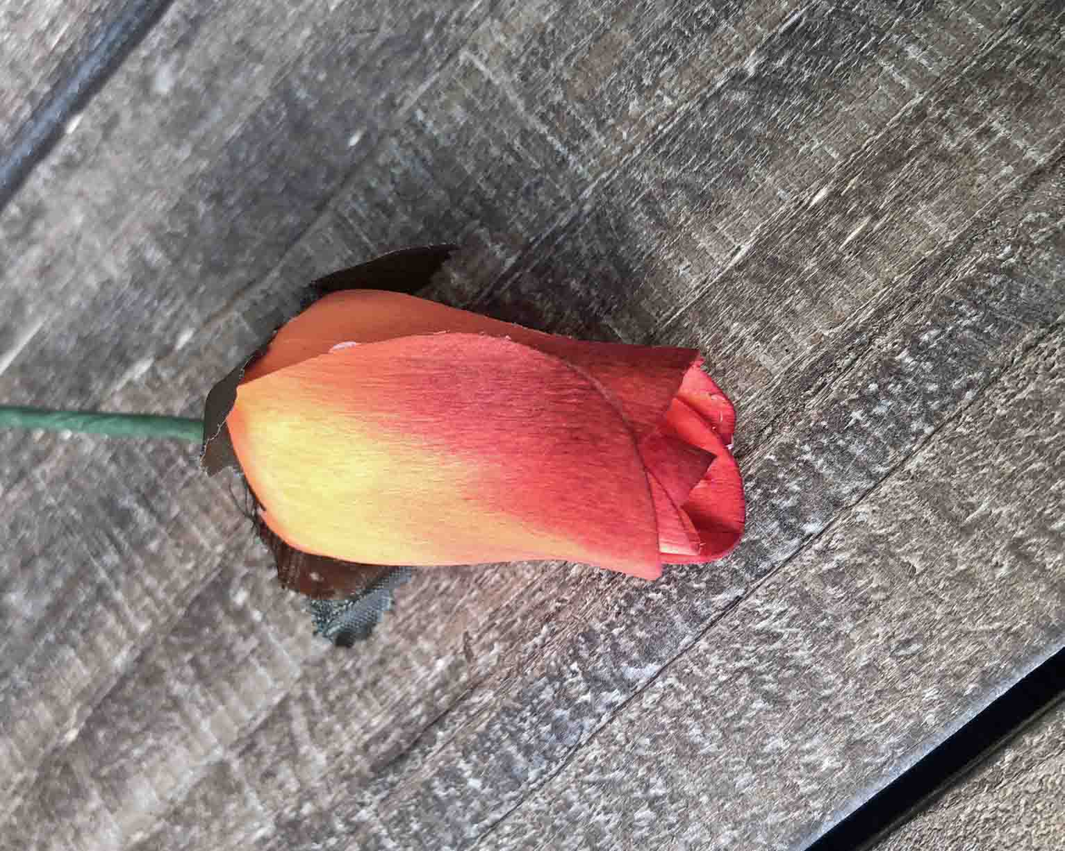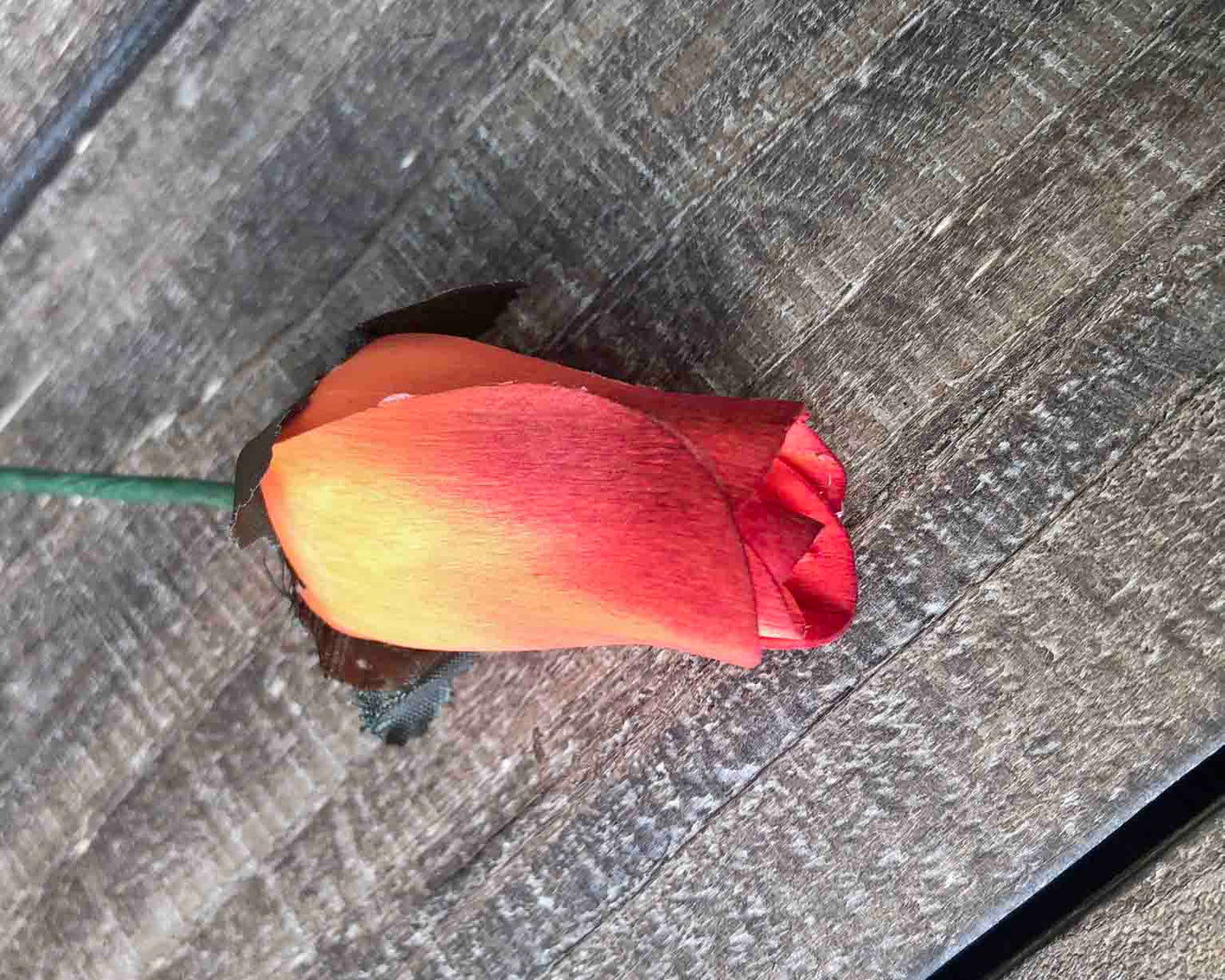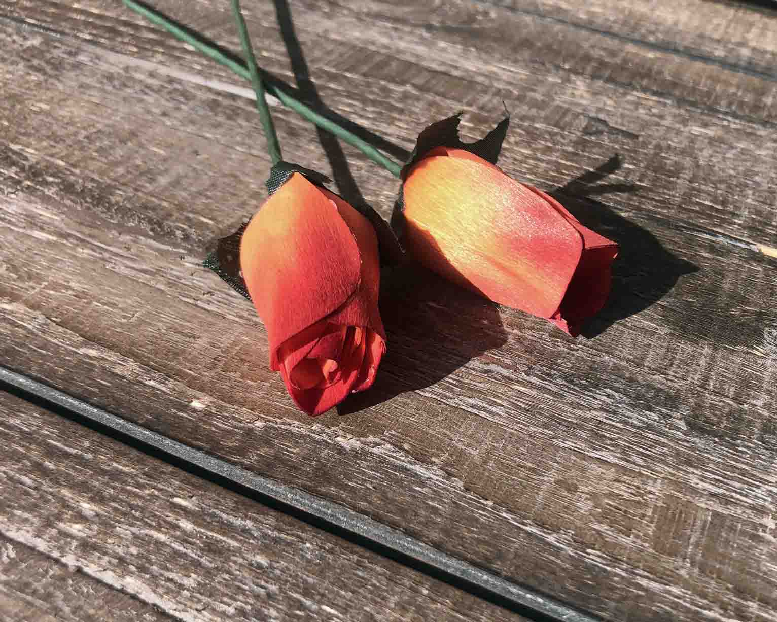 Orange & Burgundy Wooden Rosebud (price per stem)