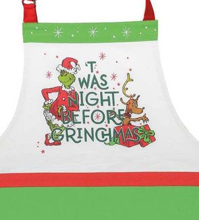 Humbugs & holiday admirers alike can find joy in this Christmas collection inspired by Dr. Seuss. Bearing the message Twas the Night Before Grinchmas this festive chef apron makes the perfect gift and season staple. Spread cheer with a sneer this year!