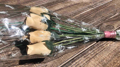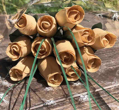Tired of your fresh flowers wilting? These roses make a beautiful decoration that lasts and lasts.These wooden rosebuds are made from thin pieces of birch wood. Each one goes through a dye process making each stem truly unique!