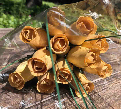 One Dozen Wood Rose Bouquet, Light Yellow