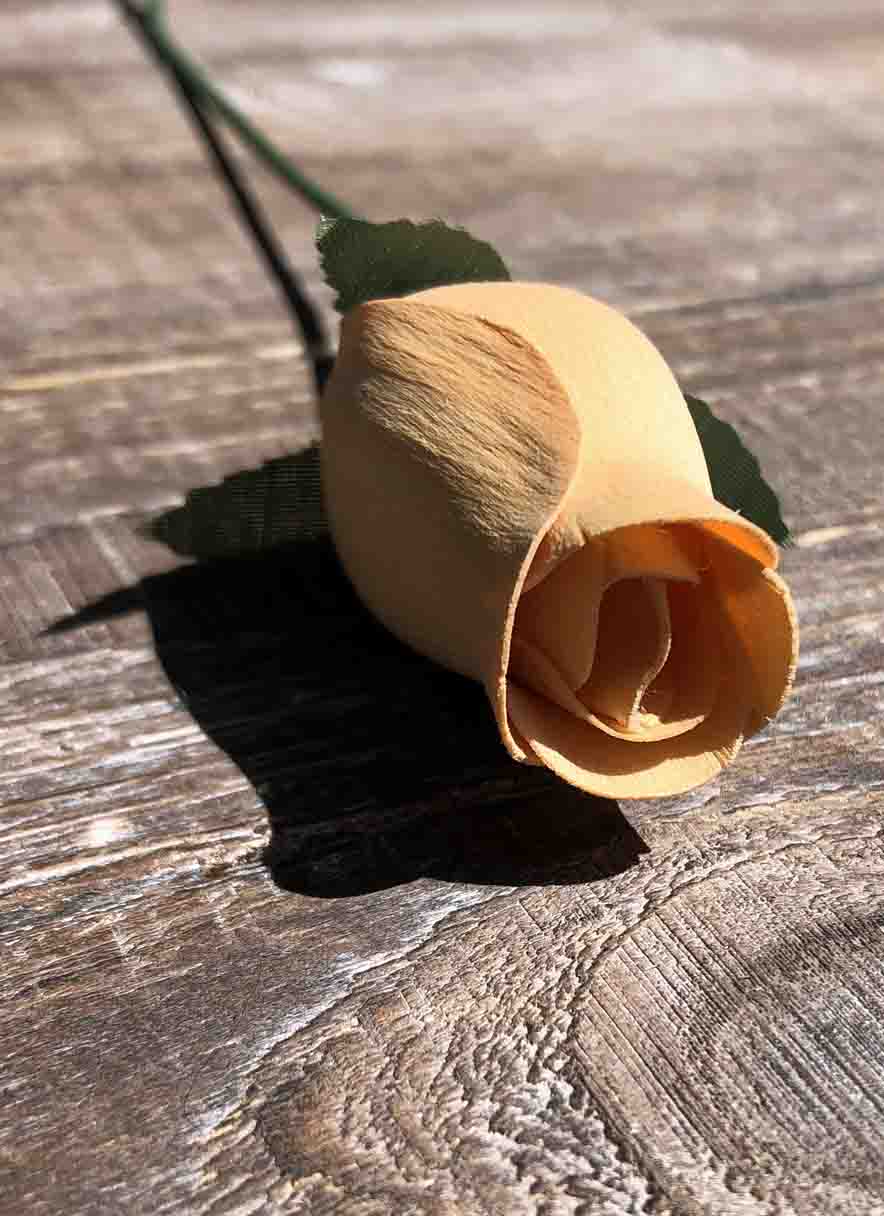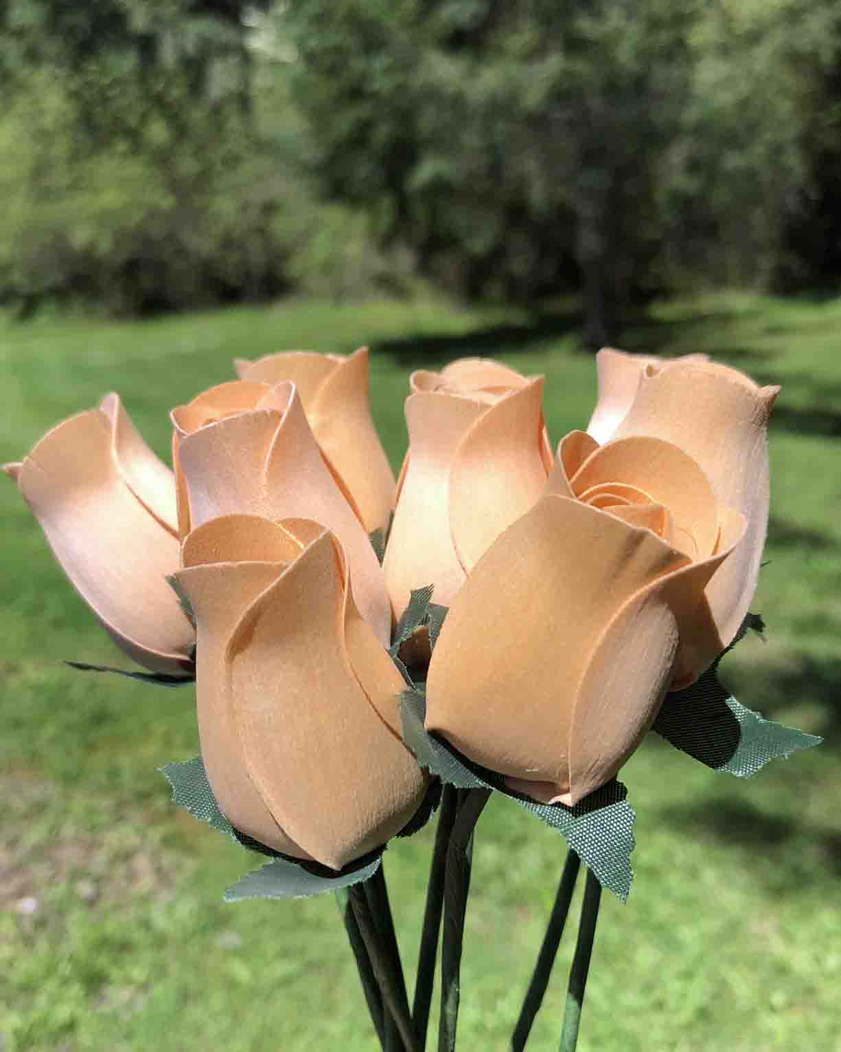 Tired of your fresh flowers wilting? Have a wedding or prom coming up? These roses make beautiful decorations, bouquets and centerpieces. These wooden rosebuds are made from thin pieces of birch wood. Each one goes through a dye process making each stem truly unique!