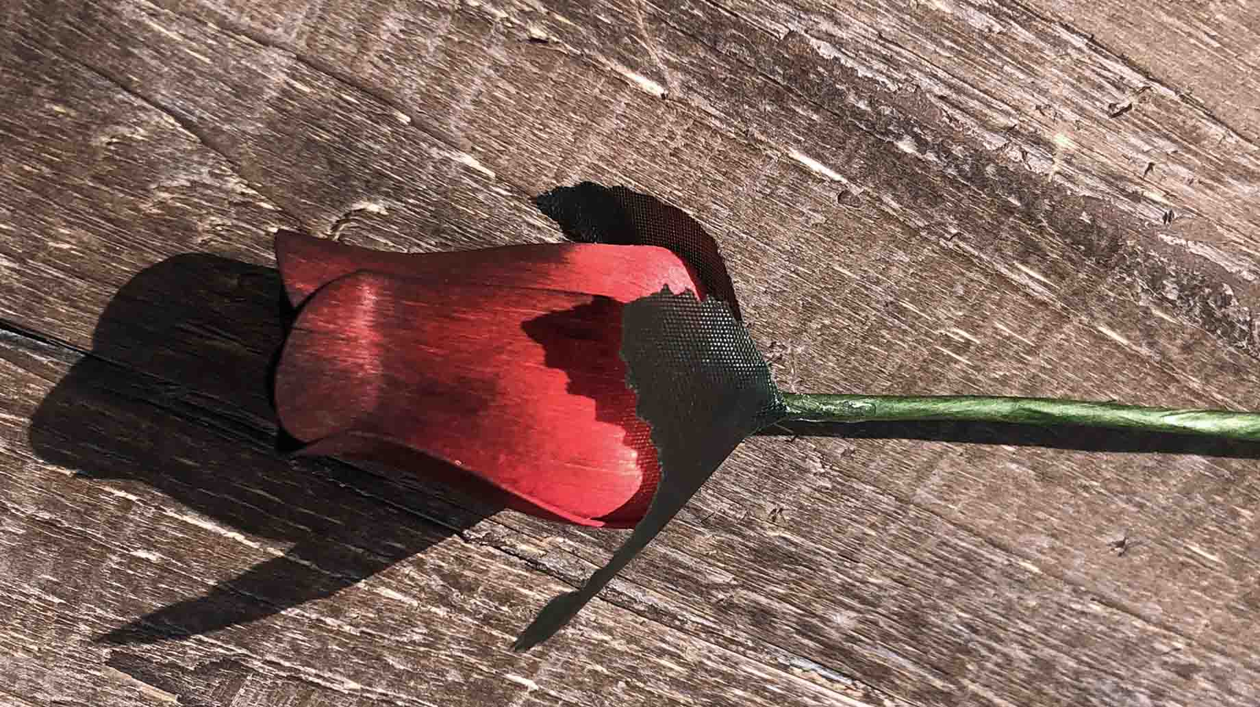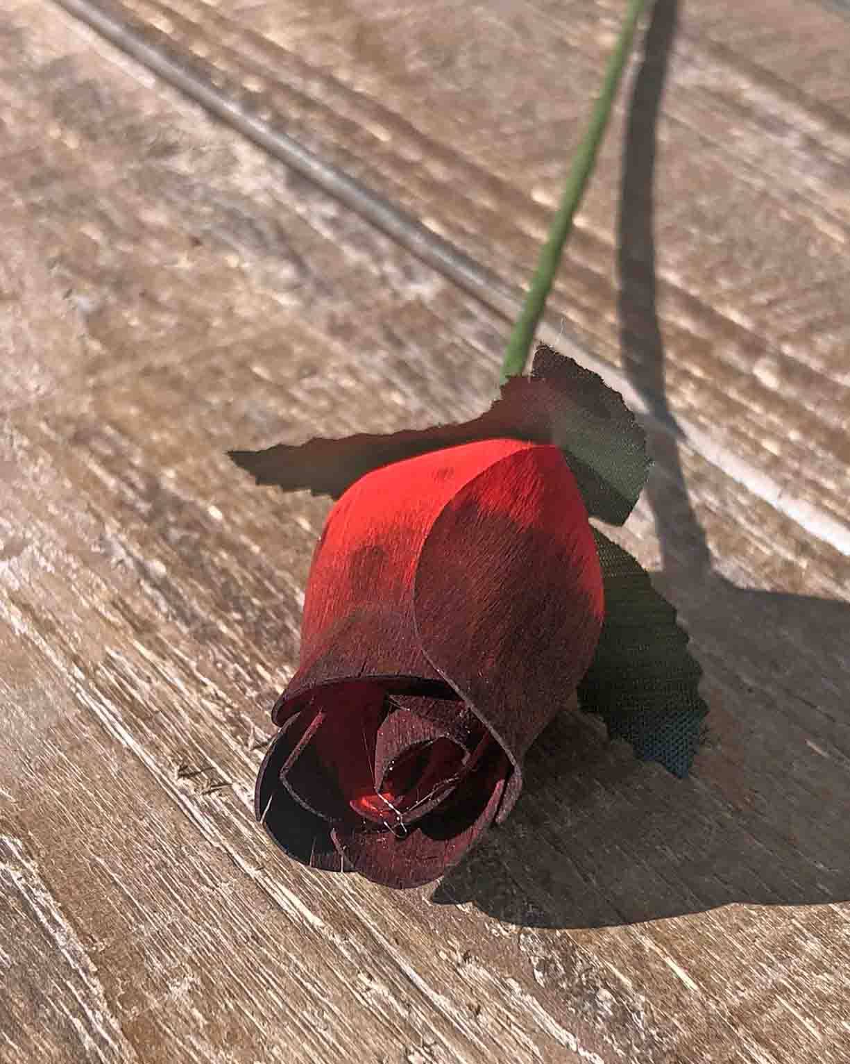 Red & Black Wooden Rosebud (price per stem)