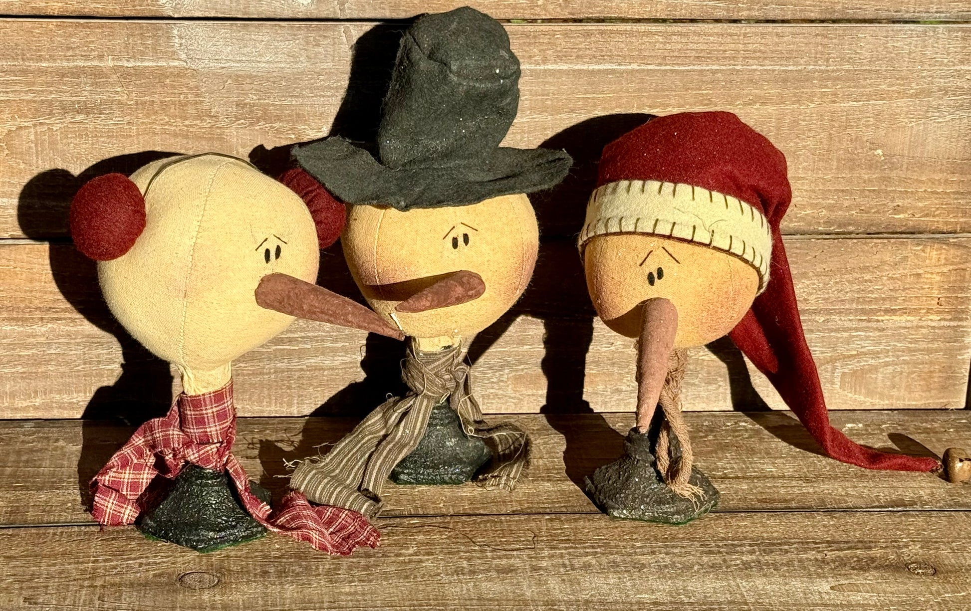 Perched on their charming little spindles, these delightful snowmen bring whimsical winter cheer to any space. Their adorable design captures the magic of the season with a touch of playful personality that's impossible to resist!