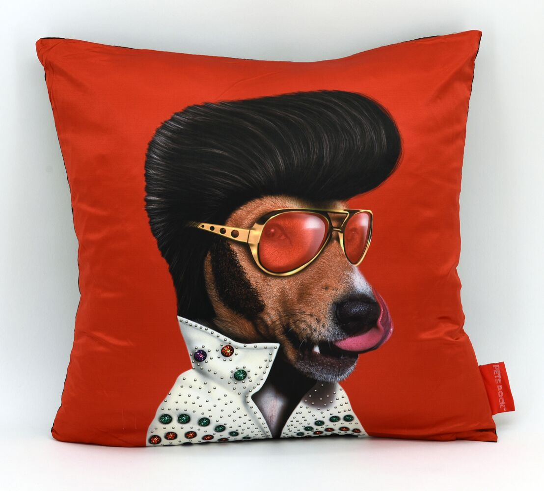 No need to have a suspicious mind about this pillow! With a pompadour hairstyle, big glasses and jeweled jumpsuit, this hound dog is sure to get you rockin' & rollin'! You can't help falling in love with this Vegas inspired faux silk throw pillow. It would be a stylish addition to your sofa, chair, bed or game room! This rock influenced pillow definitely won't land you in the jailhouse! Group several different pillows and take turns guessing who these animals personify!